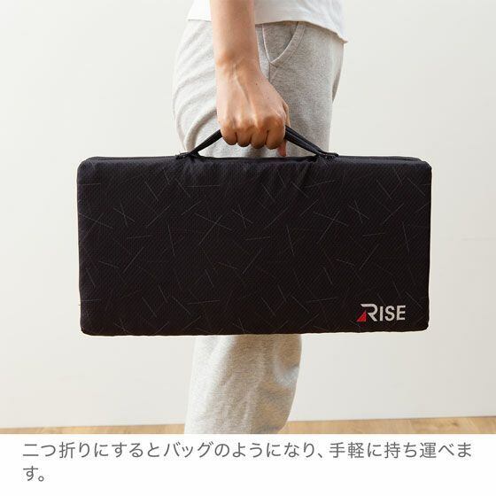 スポーツ観戦やアウトドアで大活躍する、モバイルタイプのシートクッションです。中材にマットレスと同じ高反発ファイバーを採用、お尻に敷くと疲労が軽減します。折りたたむとバッグのようになり持ち運びも楽々です。
